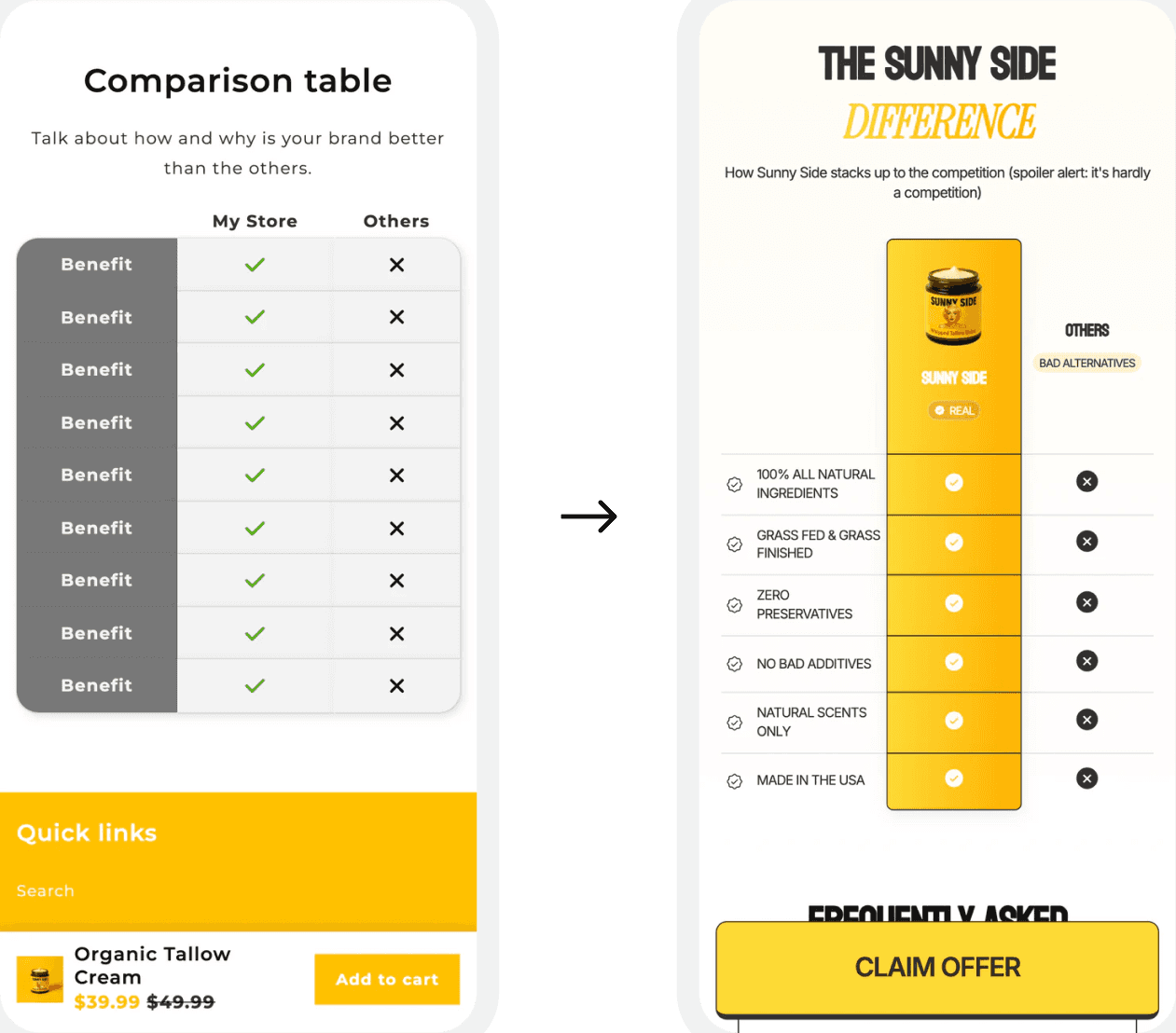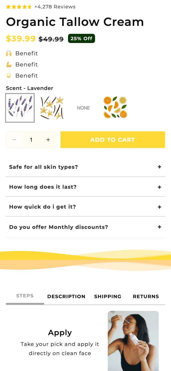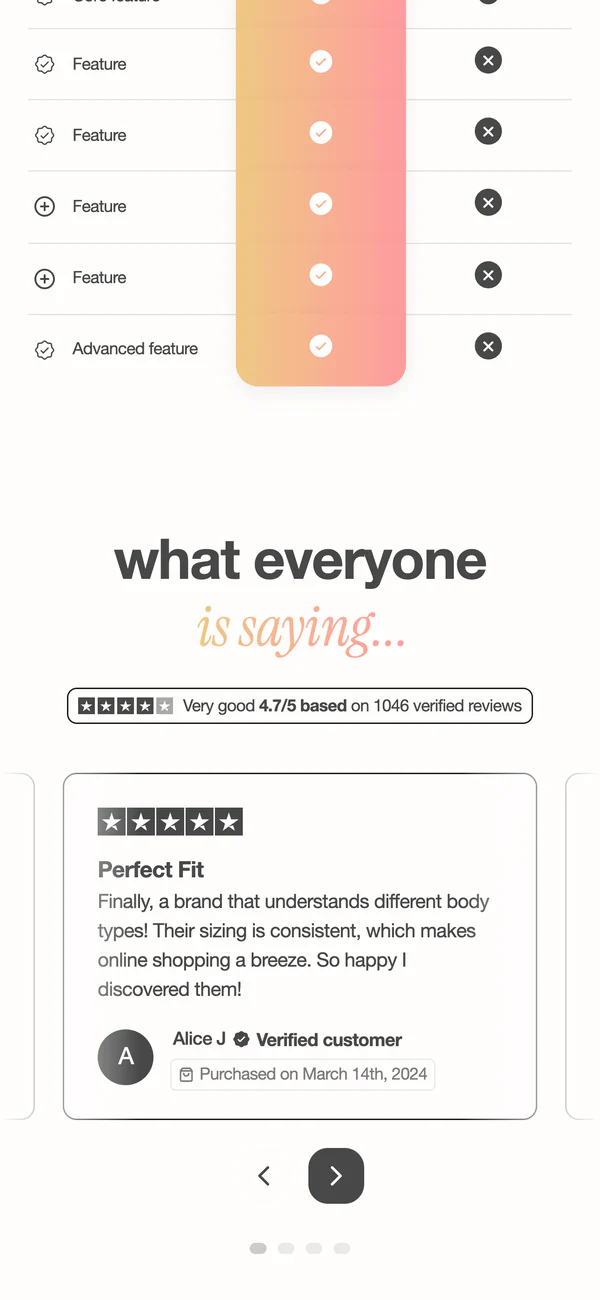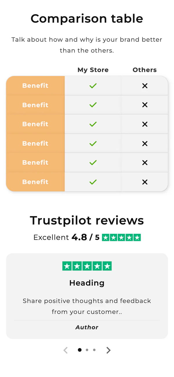✔ Badges, avis clients, mentions, sécurité. ✔ Intégrer des témoignages et des preuves sociales. ✔Page FAQ et politique de retour claire.