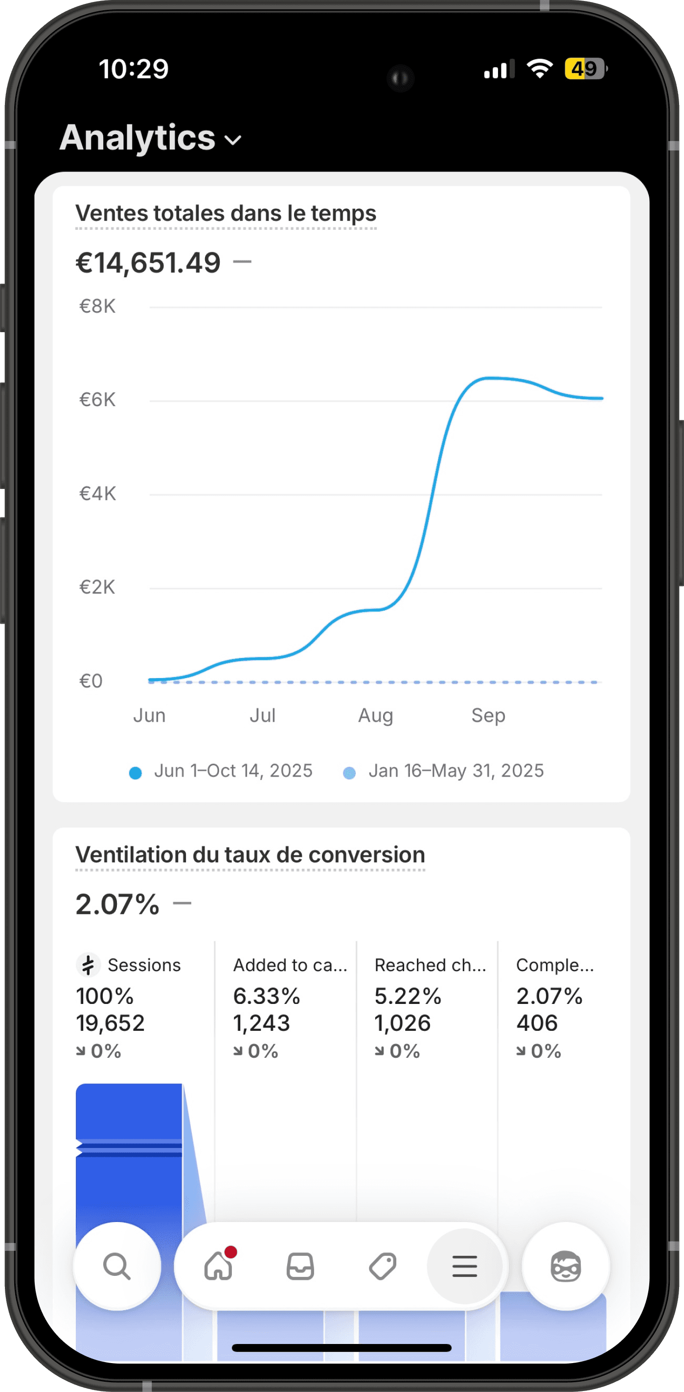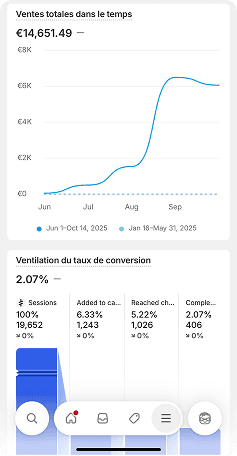 ✔ Suivre les indicateurs de performance (KPI) ✔ Analyser le comportement client ✔Connecter et exploiter Google Analytics & Meta Pixel ✔Optimiser le tunnel d’achat ✔Créer un plan d’amélioration continue