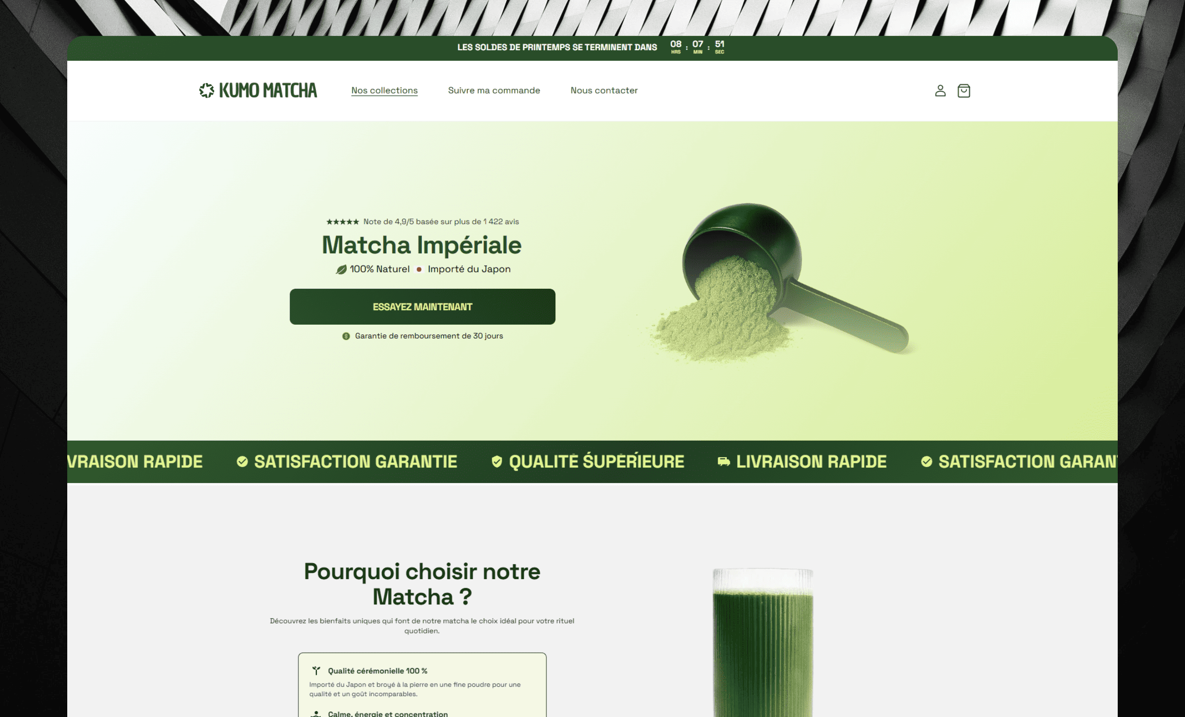 Grâce à nos années d’expertise dans la création de boutiques e-commerce, nous avons développé une méthodologie unique et une collaboration en équipe optimisée, ce qui nous permet d’être incroyablement efficaces. Cette approche nous permet de créer des boutiques performantes et esthétiques, tout en maintenant des tarifs compétitifs.
